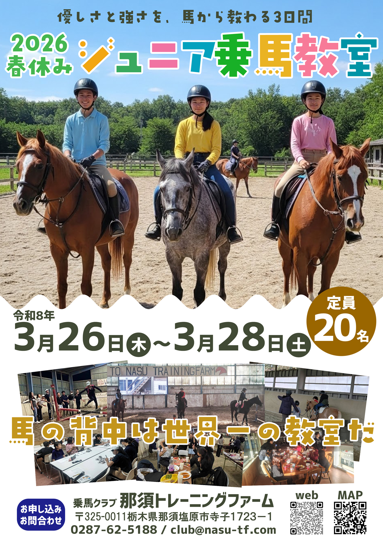 那須トレーニングファームは、日頃から乗馬に対する理解と普及に努め、那須塩原市が主催する乗馬講座への協力とともに、乗馬スポーツ少年団の活動など、若年層から馬に親しむ機会を設けることによる子供たちの健全育成にも取り組んでおります。